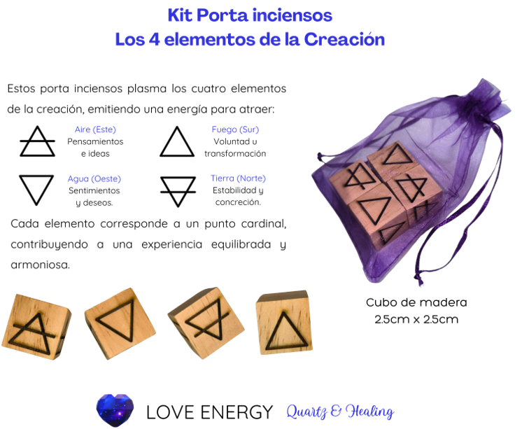 Estos porta inciensos plasma los cuatro elementos de la creación, emitiendo una energía para atraer: Aire, Fuego, Agua, Tierra.